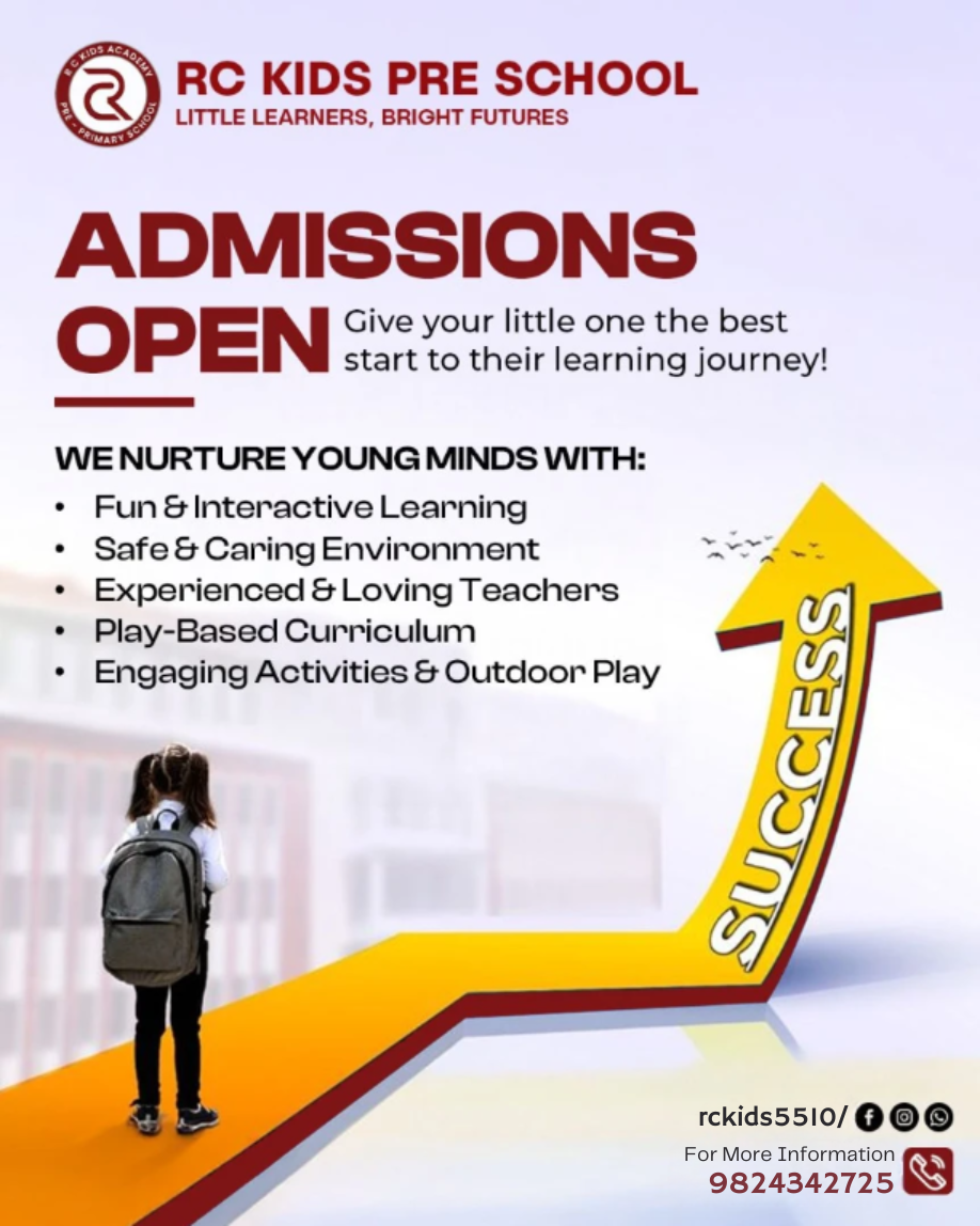 RC Kids Academy Pre School in Bopal, Ahmedabad is a nurturing early education center designed for children aged 2.5 to 6 years. With experienced teachers, a structured learning schedule, and a safe, child-friendly environment, we ensure every child develops a love for learning from day one.
