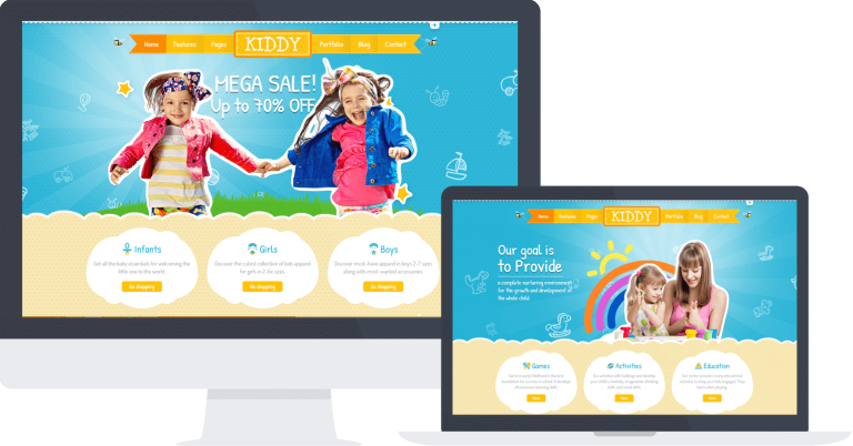“Kiddy” comes with a very powerful Theme Options panel. With its help you will easily manage any part of your webiste: header, footer, page layouts, widget areas and much more.